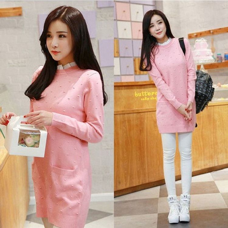 女裝韓版木耳領波點修身顯瘦毛衣中長款打底衫花邊領針織衫毛衣 /