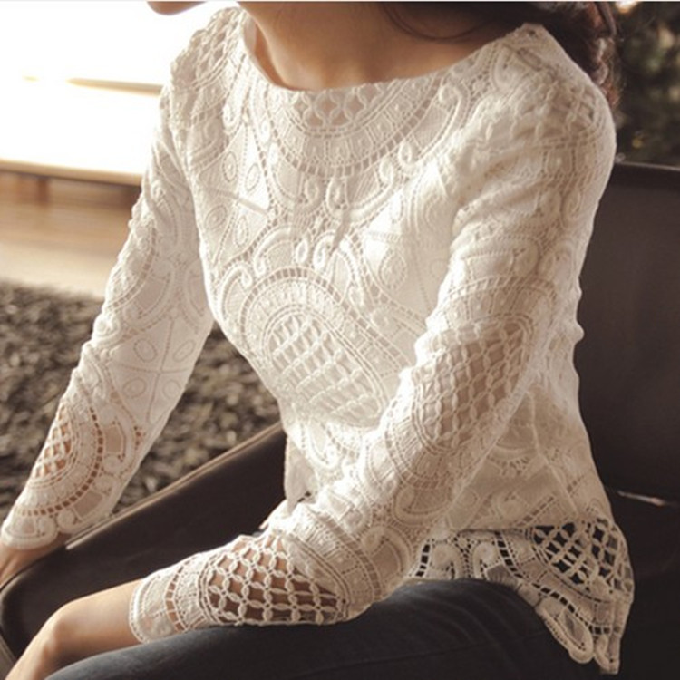 2015夏秋季新款女裝修身打底衫白色短款蕾絲衫小衫長袖上衣 /