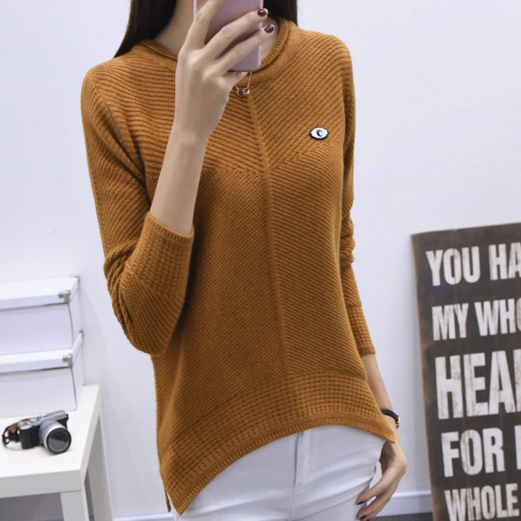 韓版時尚女裝秋冬裝新款毛衣 圓領波紋拼色針織衫套頭廠家直銷 /