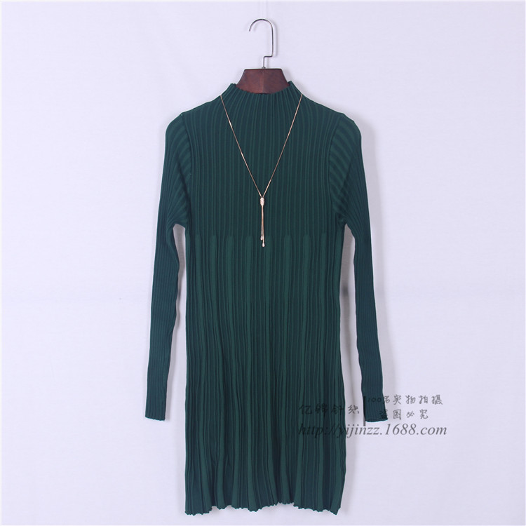 秋冬新款加厚半高領毛衣女套頭修身包臀中長款螺紋針織打底連衣裙 /