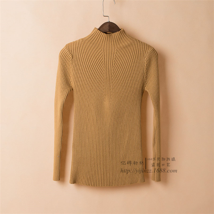 工廠批發2015秋冬新款半高領保暖打底衫套頭毛衣女針織修身 /