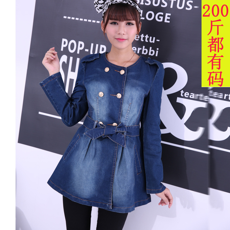 2015秋裝新款女裝翻領長袖牛仔外套 胖MM大碼顯瘦中長款開衫上衣 /