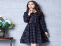 2015秋冬新款連衣裙文藝堆領(lǐng)格子針織純棉A字大擺套頭寬松裙女 /