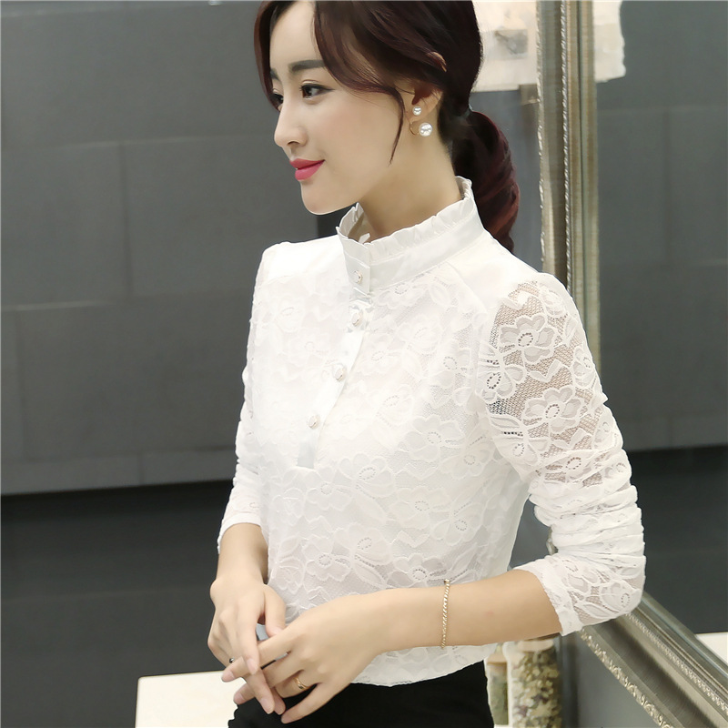 2015新款長袖打底衫潮韓版修身立領(lǐng)小衫勾花鏤空蕾絲衫女 /