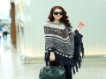 2015寬松流蘇大碼套頭針織衫女百搭外套中長款斗篷披肩蝙蝠衫毛衣 /