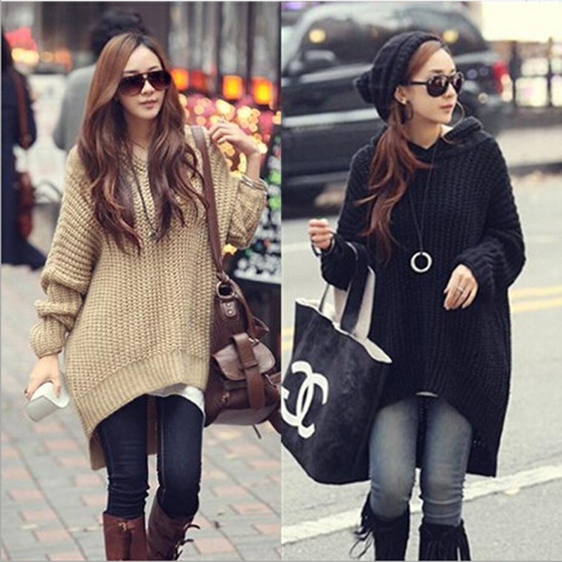 韓版2015秋冬新款時尚不規則下擺寬松大碼連帽長袖女式毛衣套頭 /