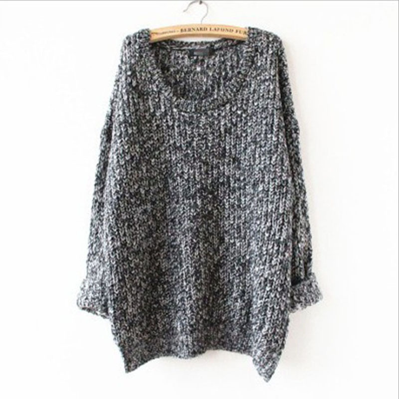 秋冬款韓版針織衫寬松圓領長袖套頭大版雜色灰色毛衣女裝外套 /