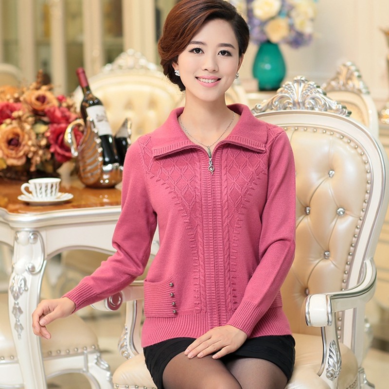 中老年女裝秋裝外套大碼中年女裝秋冬媽媽毛衣羊毛開衫女 /