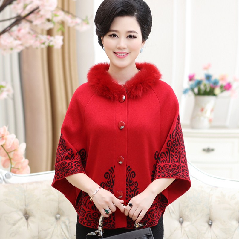 中老年女裝秋冬蝙蝠袖針織開衫寬松斗篷媽媽裝毛衣外套大碼女裝 /