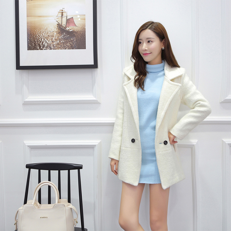 2015春秋裝新款羊毛呢外套中長款韓版修身翻領(lǐng)毛線袖純色呢子大衣 /
