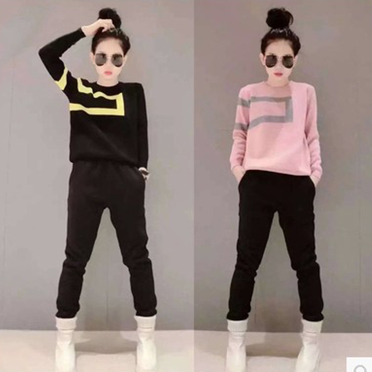 歐洲站2015秋冬新款時尚印花長袖衛(wèi)衣休閑長褲兩件套套裝潮牌 /