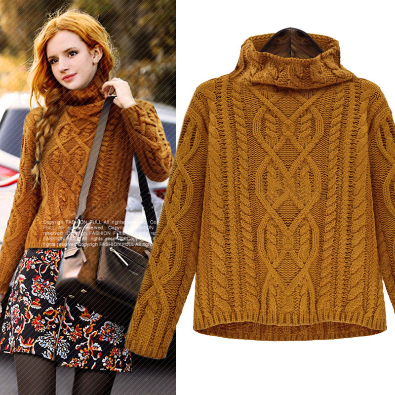 高領純色麻花針織外套女秋冬長袖2015新款寬松毛衣衫 /