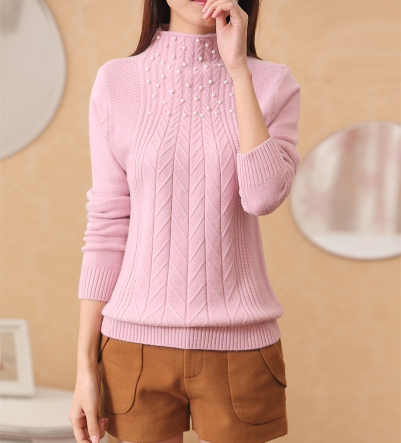 2015秋裝新款半高領釘珠針織衫打底衫毛衣女裝 /