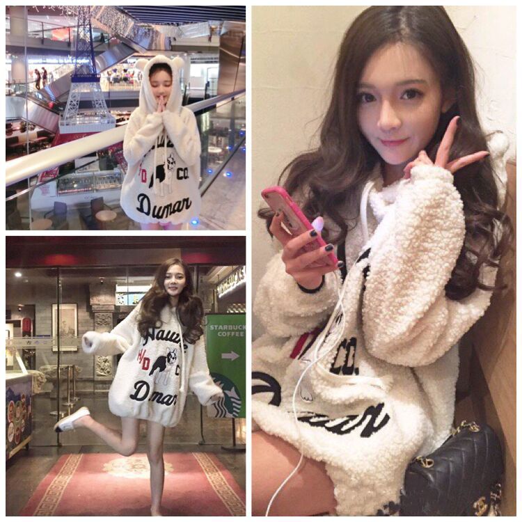 新款潮牌網紅同款 暖心萌神羊羔毛長款衛衣絨衣 /