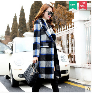 2015秋冬格子毛呢大衣女韓版修身呢子風衣女款中長款羊毛 /