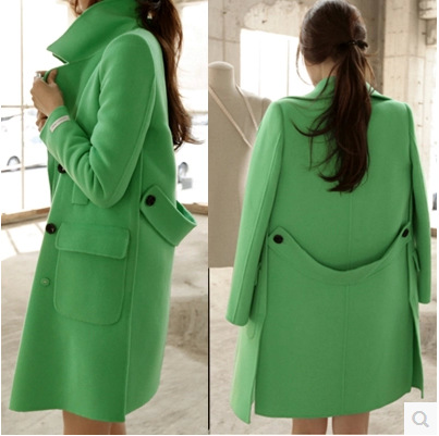2015秋冬裝新款韓版女裝修身中長款羊毛呢風衣外套呢子大衣 /