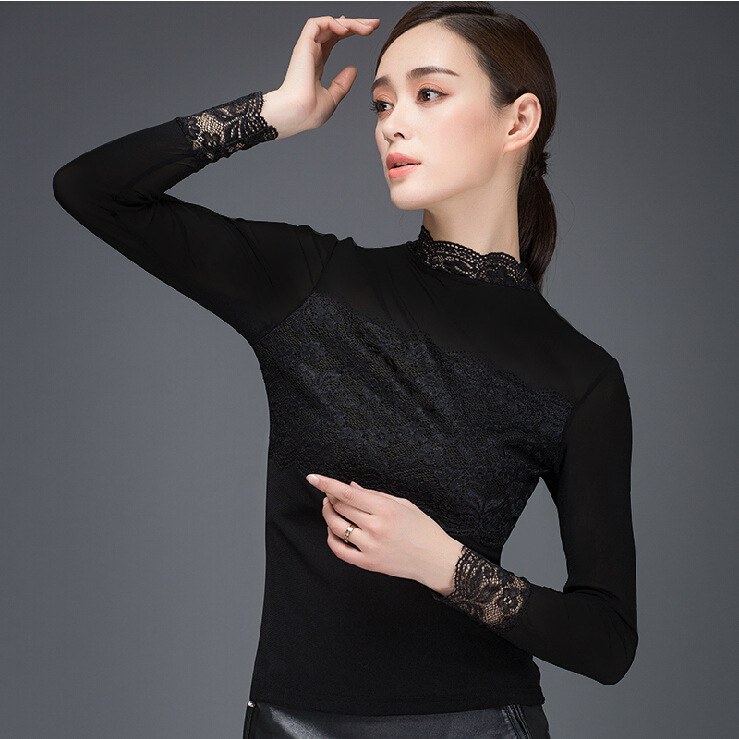 2015歐美女裝高領保暖打底衫 秋冬大碼胖MM加大冬加絨網紗打底衫 /