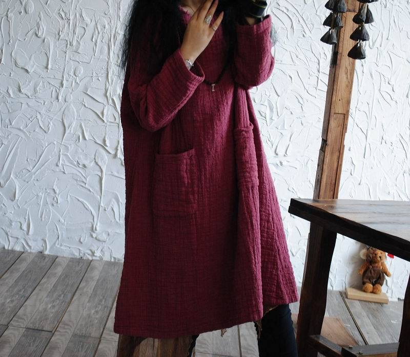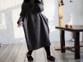 秋冬原創設計女裝簡約文藝范加厚棉麻肌理保暖打底禪意袍子連衣裙 /