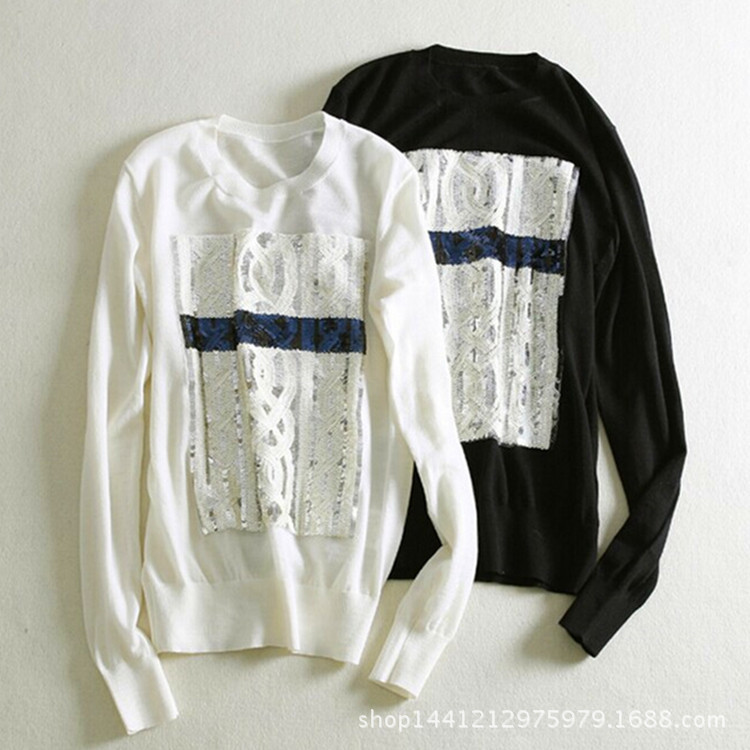 2015秋冬D家歐美同款亮片羊毛針織衫手工打底女裝套頭毛衣批發 /