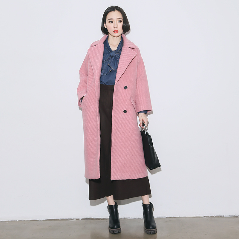2015韓國su正品長款繭型毛呢大衣雙排扣長款夾棉羊毛呢外套冬 /