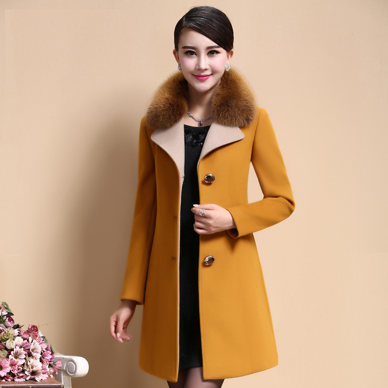 羊絨大衣女秋冬2015新款高端大牌中長款毛呢外套羊毛狐貍毛領冬裝 /