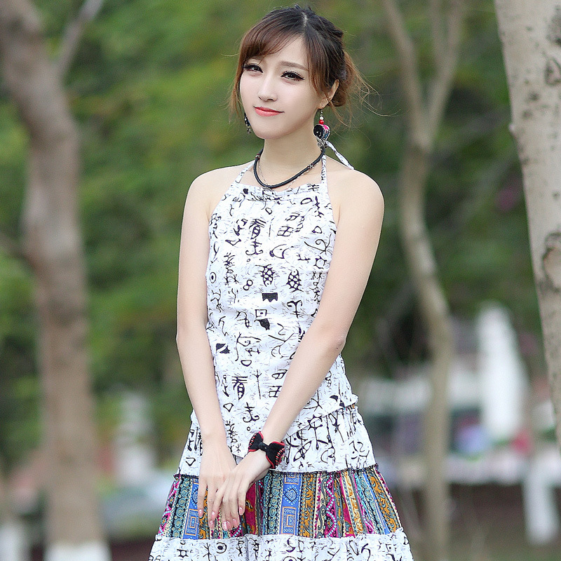 實拍8085依朵拉2015夏季新品女裝民族風字母印花 休閑吊帶小背心 /