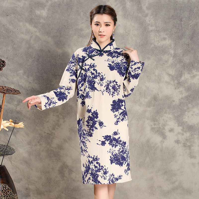 925#2015秋冬棉麻復古民國風古典旗袍手工盤扣上衣女裝裙衣 /