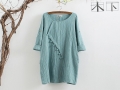 原創手工盤扣亞麻連衣裙 秋款長袖圓領長裙袍子 精致中式中長裙 /