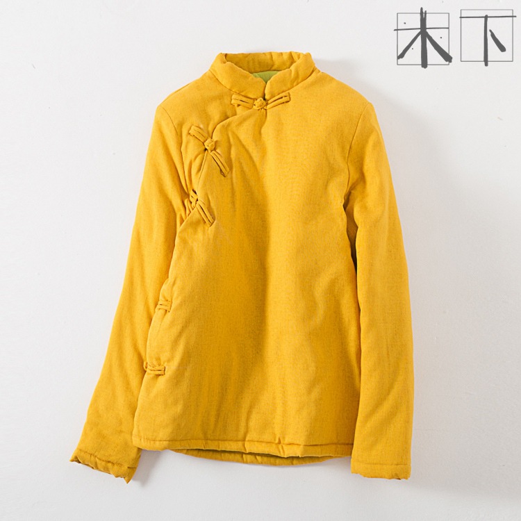 棉麻文藝復古短外套 加厚斜襟盤扣民族原創棉衣棉服 加厚唐裝棉襖 /