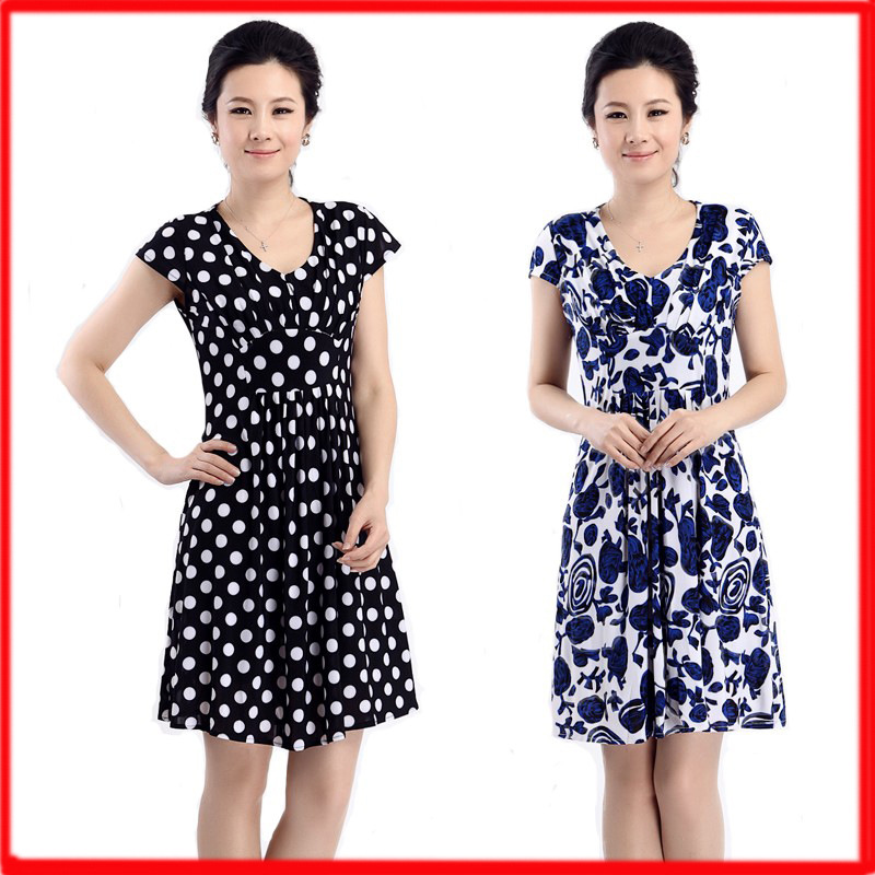 2015牛奶絲短袖連衣裙夏季媽媽裝碎花中老年大碼冰絲裙子一件代發(fā) /