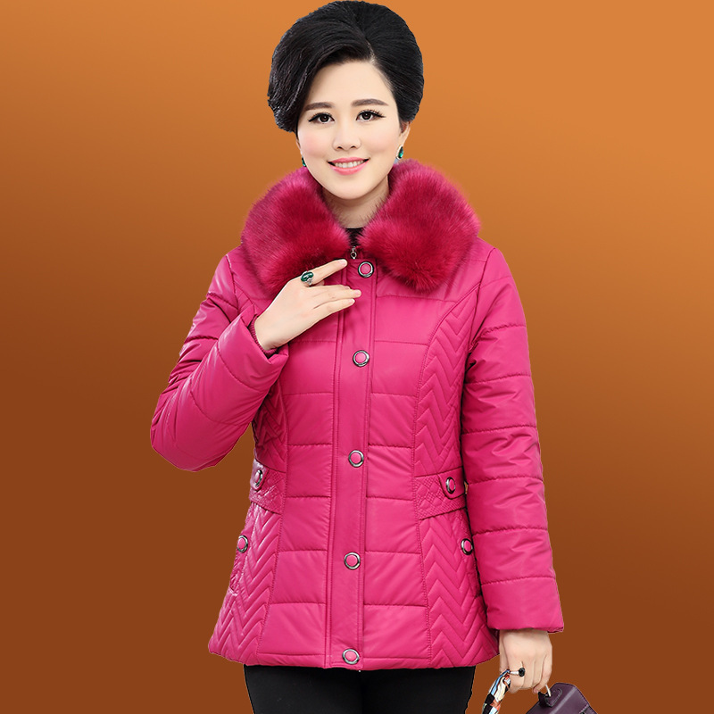 2015新款中老年女裝棉衣中年媽媽裝棉襖加大碼短款毛領(lǐng)PU皮棉服 /