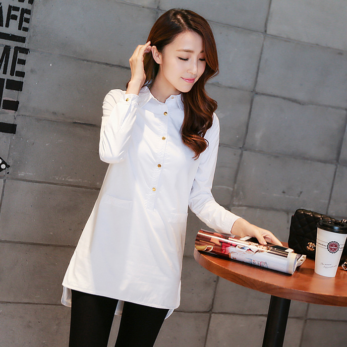品質秋冬新款加絨加厚女長袖襯衫中長款加棉保暖純色氣質襯衣 /