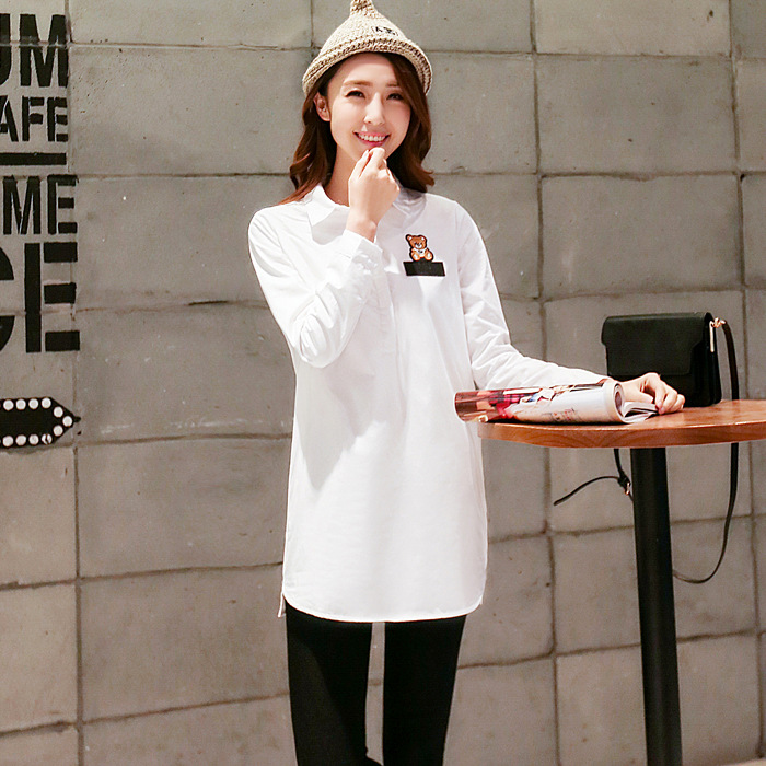 秋冬加厚小熊襯衫長袖韓版保暖白色加絨襯衣女中長款上衣潮批發 /