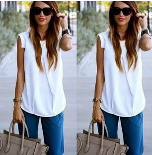2015速賣通ebay爆款 無袖皺褶雪紡衫 雪紡上衣 /