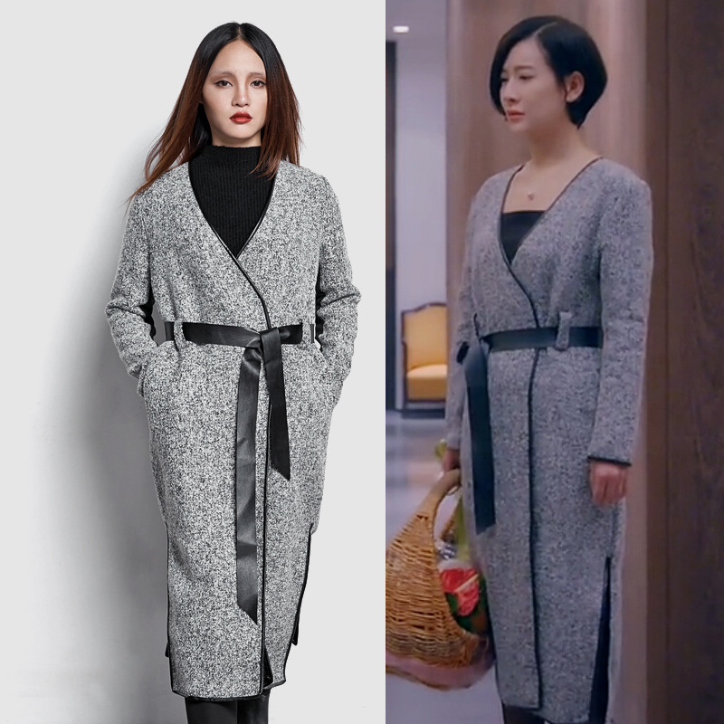 克拉戀人唐嫣劉思源明星同款毛呢大衣外套衣服 秋冬系帶女式風(fēng)衣 /