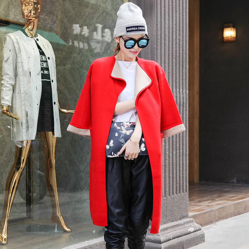 中長(zhǎng)款直筒純色翻領(lǐng)大衣 韓國(guó)東大門(mén)潮流時(shí)尚秋冬新品雙面呢大衣 /