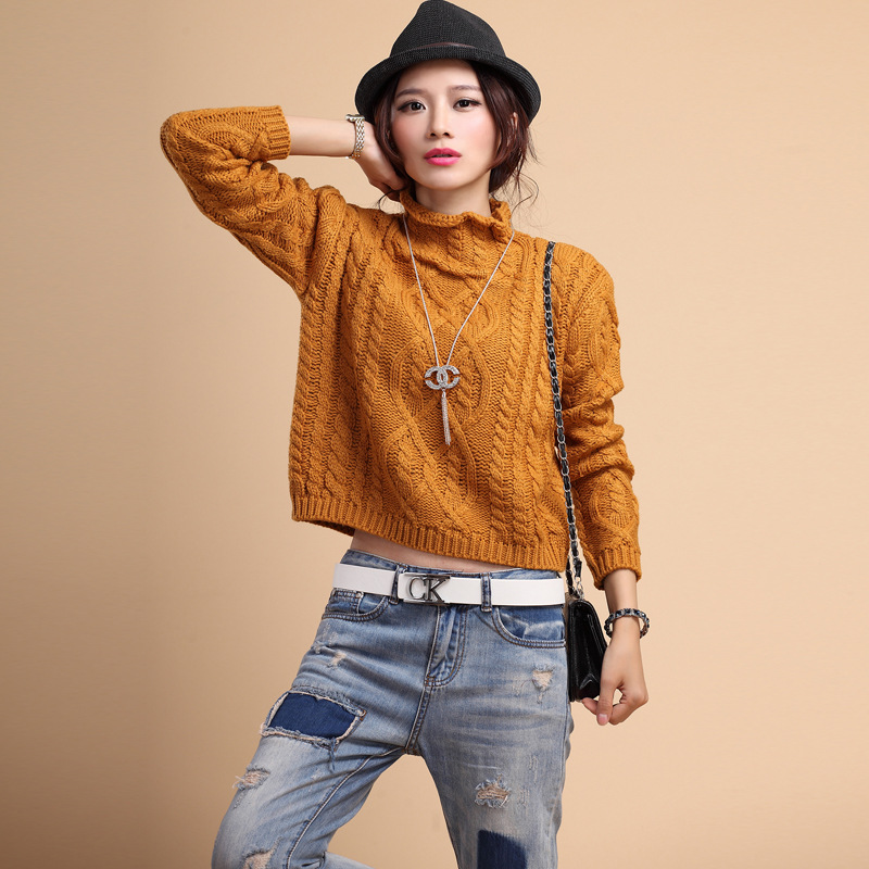 2015秋裝羊毛衫 女東大門(mén)半高領(lǐng)寬松純色短款毛衣女 針織衫批發(fā) /