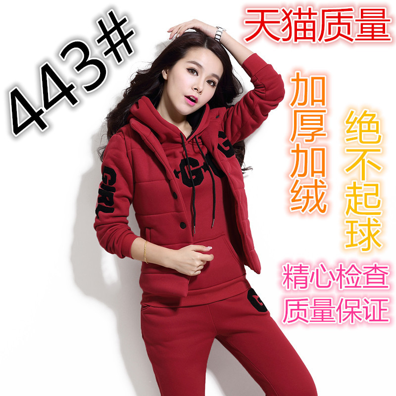 秋冬新款大碼女裝休閑套裝加絨加厚長袖連帽衛衣運動三件套女 /