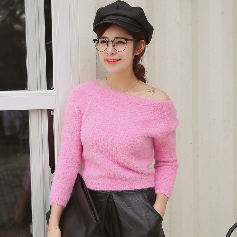 2015秋冬新款韓版百搭圓領套頭純色海馬毛長袖修身針織毛衣女 /
