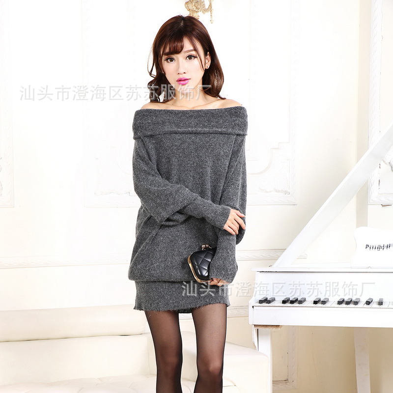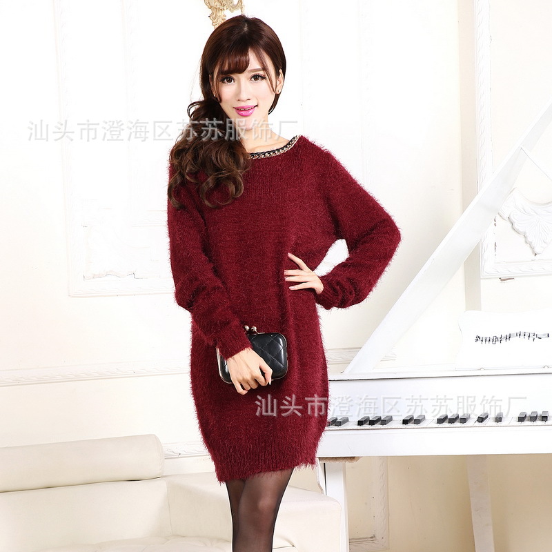 【susu毛衣】新秋冬鏈條馬海毛中長款百搭套頭打底女款包臀連衣裙 /
