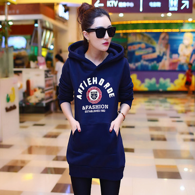 2015新款冬裝韓版修身加絨時尚休閑女衛衣中長款連帽繡花卡通圖案 /