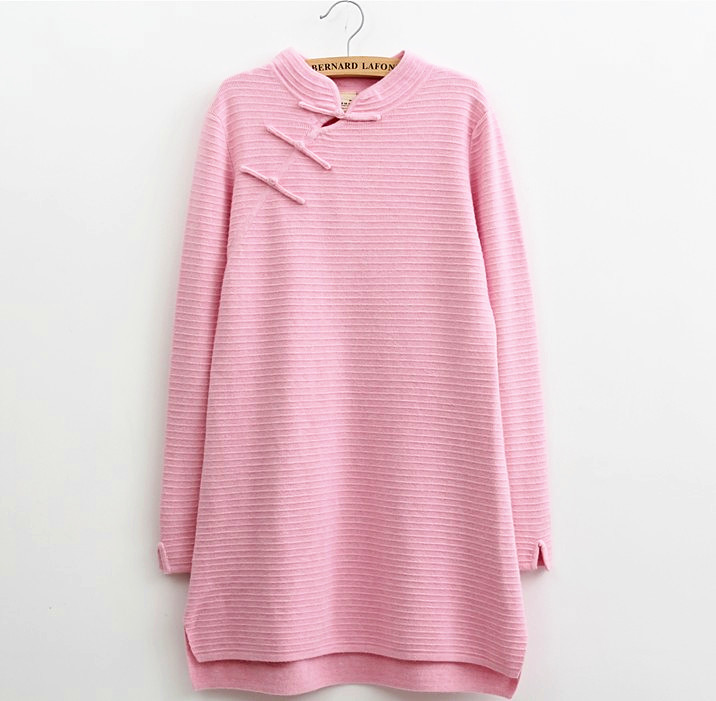 2015秋冬新款圣仕蓮151235中式立領(lǐng)斜盤扣毛衣連衣裙旗袍女 /