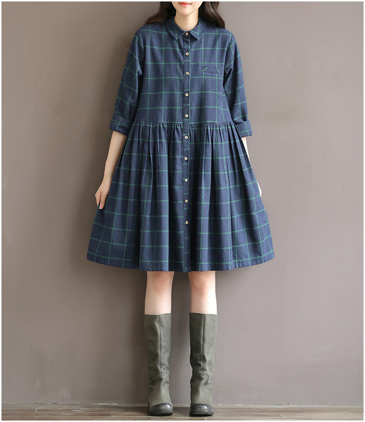 安妮森林加厚文藝小清新百搭大擺寬松休閑襯衫領森女系連衣裙 /