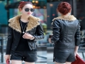 2015秋冬新款女式保暖加絨PU皮衣外套翻領韓版修身休閑短款 女裝 /