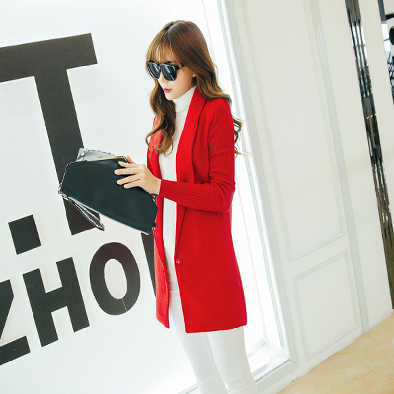 秋冬新款韓版中長款開衫毛呢大衣保暖針織毛呢保暖風衣外套 /