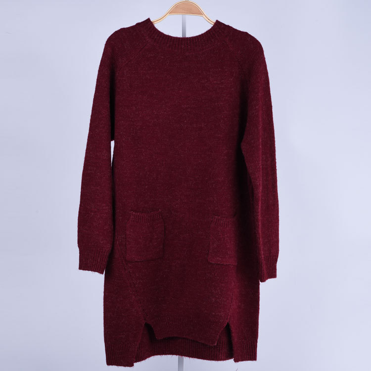 2015秋冬女裝套頭針織衫前短后長毛衣打底衫圓領開叉寬松毛衣口袋 /
