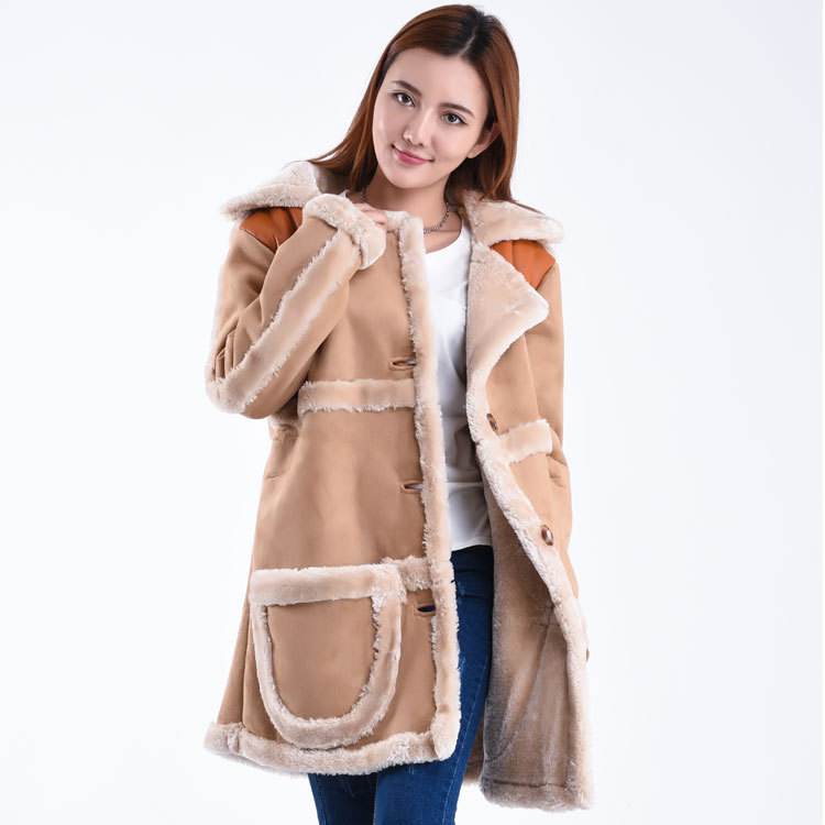 2015新款韓版冬季女裝中長款寬松羊羔毛鹿皮絨保暖加厚棉上衣外套 /