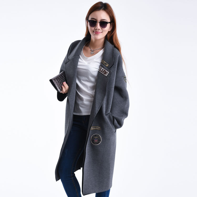 簡介: 貨號JK555 產地廣州 品牌其他 主圖來源實拍有模特 產品類別大衣 貨源類別現貨 是否庫存是 庫存類型整單 面料名稱太空棉 主面料成分聚酯纖維(滌綸) 主面料成分的含量50(%) 圖案字母 風格韓版 厚薄普通 版型直筒型 衣長中長款(65cm<衣長≤80cm) 領型西裝領 袖長長袖 衣門襟單排扣 是否有腰帶無腰帶