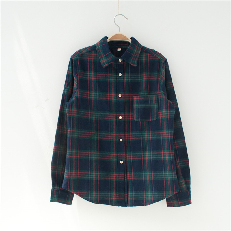 1383#純棉復古格子長袖襯衫女式森女日系襯衫長袖經典格紋原宿 /