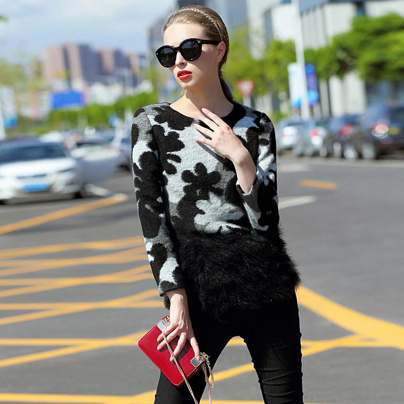 歐洲站2015秋冬新款女裝印花毛呢上衣長(zhǎng)袖套頭寬松衛(wèi)衣毛衣51037 /